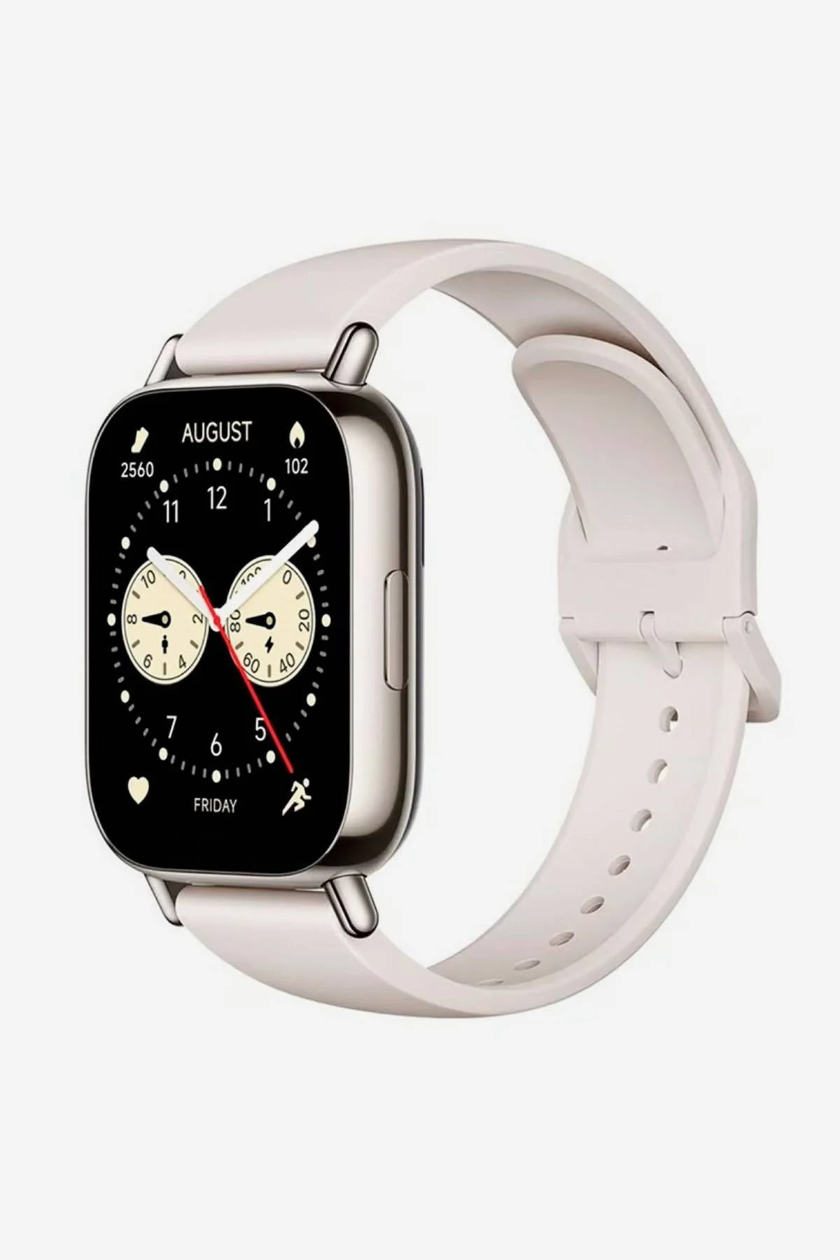 • Diseño ligero y personalizable: Disponible en colores Oro claro y Negro, cuenta con un marco central de alto brillo. Las correas de TPU, suaves y resistentes al agua, están disponibles en tonos como amarillo limón, verde menta y rosa caramelo, permitiendo combinaciones que se ajusten a tu estilo.